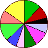 | Esercizio 1.5 Al Luna Park una ruota di legno, suddivisa in settori colorati di ampiezze diverse, gira velocemente (rendendo indistinguibili i vari colori, come in un disco di Newton), mentre un giocatore spara una freccetta con una carabina ad aria compressa, colpendo a caso uno dei settori. Che probabilità ci sono di vincere la bambolina abbinata al settore di colore nero, il cui angolo misura 18 gradi?