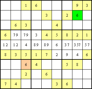 Prima di andare ad esaminare i candidati relativi alle celle vuote rimaste, è bene dare una "ripulita" ai candidati scritti in precedenza, eliminando quelli incompatibili con le cifre appena inserite.